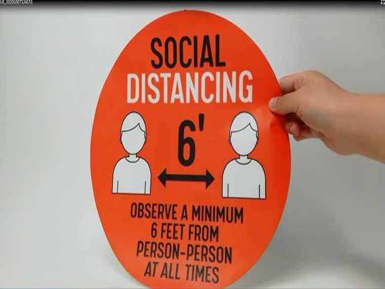 橙色社交距離貼貼紙印刷視屏